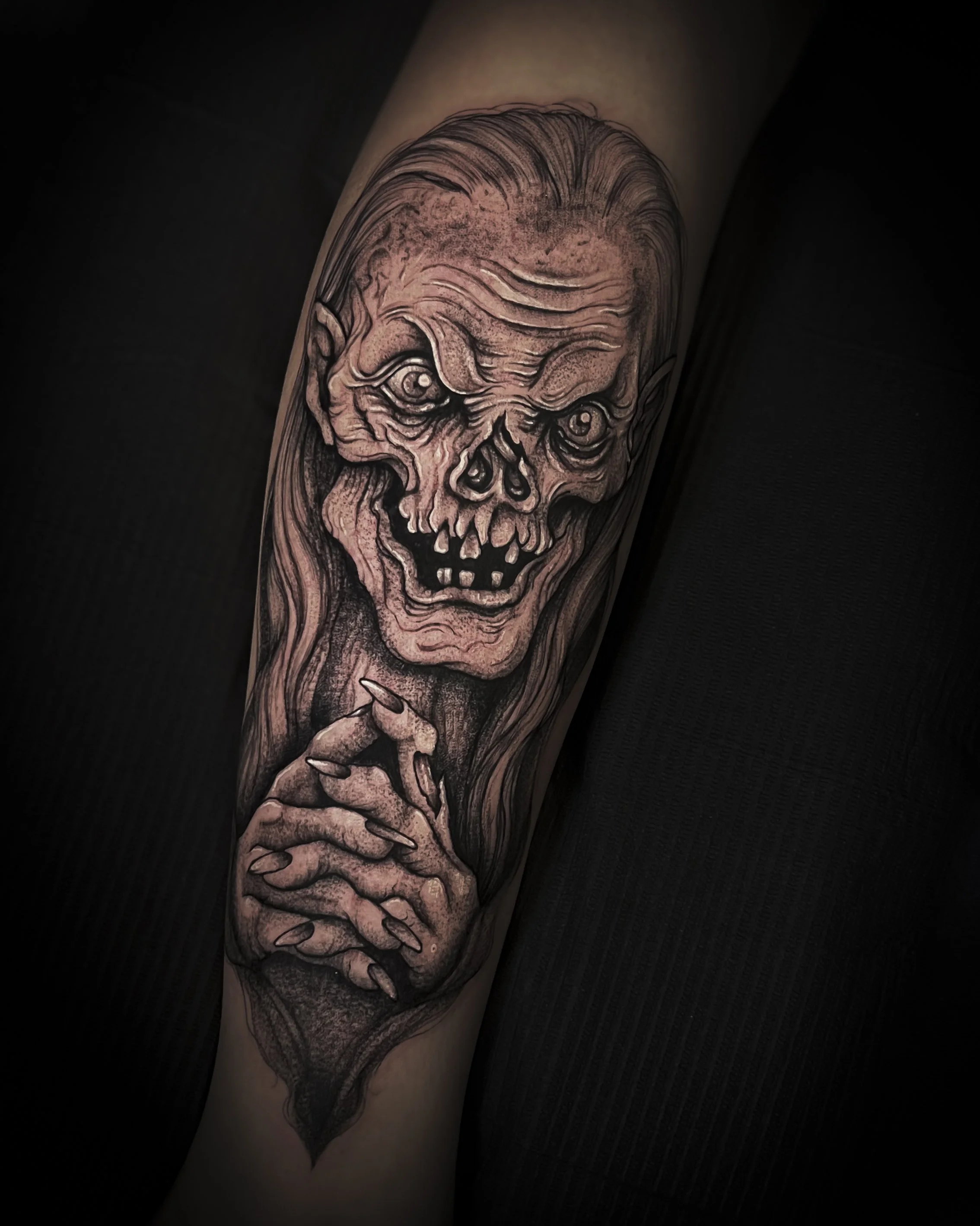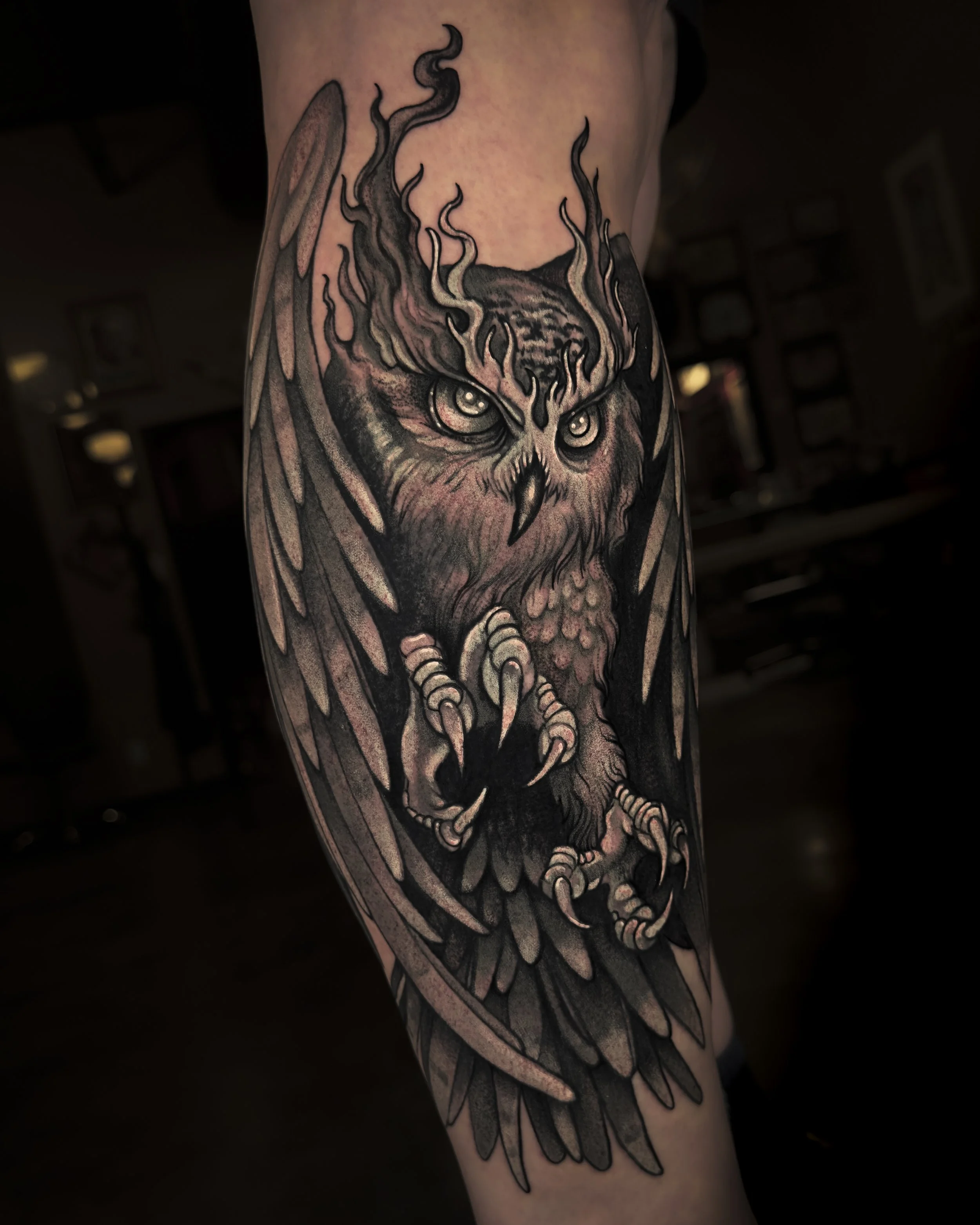 The themes I enjoy tattooing the most range from the unsettling to the adorable, from creepy and unnerving to delicate floral ornamentals and charming animals. My tattoo style can be described as a combination of the disturbing and the delightful.