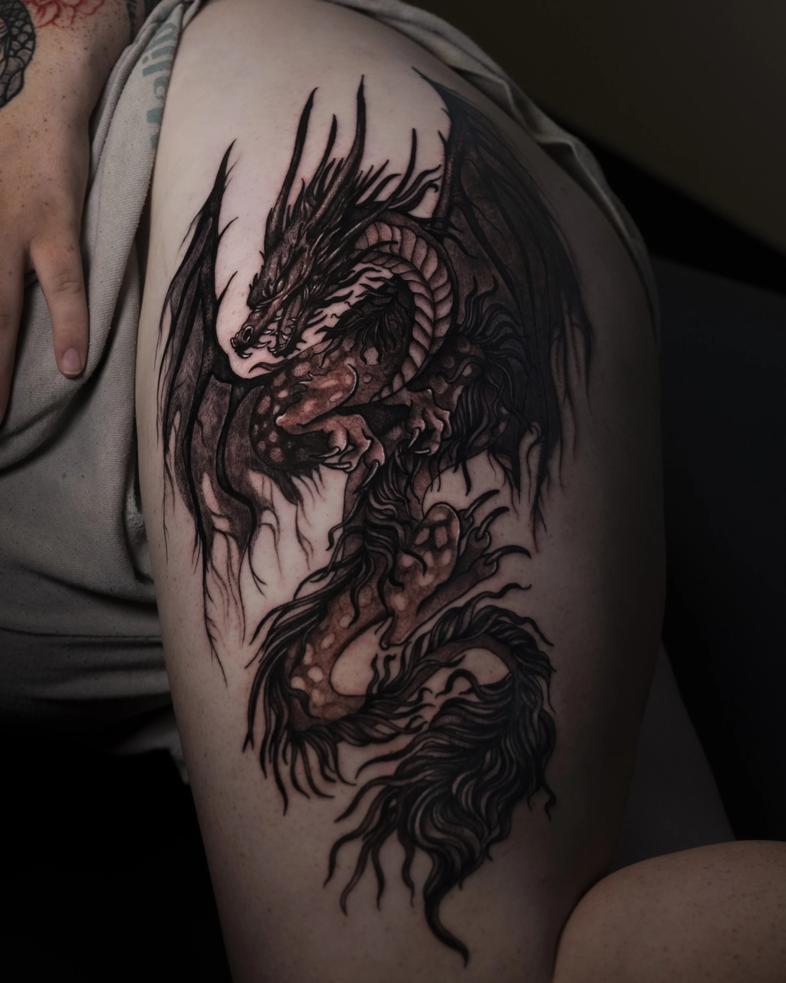 Beyond having a big love for tattooing, I adore photography, painting, and drawing, and, having nearly five years of experience as a graphic designer, I've honed my skills in digital composition, ensuring that each tattoo I create is a one-of-a-kind piece.